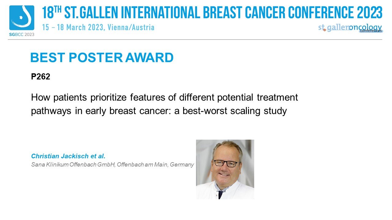 We would like to express our sincere gratitude for your valuable contribution to the 18th St.Gallen International Breast Cancer Conference 2023. It brings us great pleasure to see so many delegates come together every two years to learn about the latest developments in the treatment of individuals with early breast cancer, and your presence and contribution played an integral part in making the conference a success. As per tradition, the conference concluded with an update on the widely acknowledged «St.Gallen International Consensus on the Primary Treatment of Individuals with Early Breast Cancer,» which has just been published in the Annals of Oncology. https://www.annalsofoncology.org/article/S0923-7534(23)00835-9/fulltext